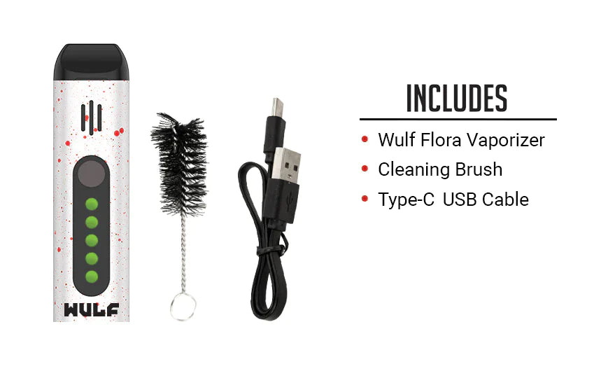 El Flora incorpora una boquilla magnética y retroalimentación háptica. El Wulf Flora ofrece calentamiento rápido para sesiones más rápidas y un puerto de carga tipo C para energía rápida. Con una batería de 1000 mAh, un rendimiento superior y una gran portabilidad, el vaporizador portátil de hierbas secas Wulf Mods Flora es un dispositivo vaporizador imprescindible.